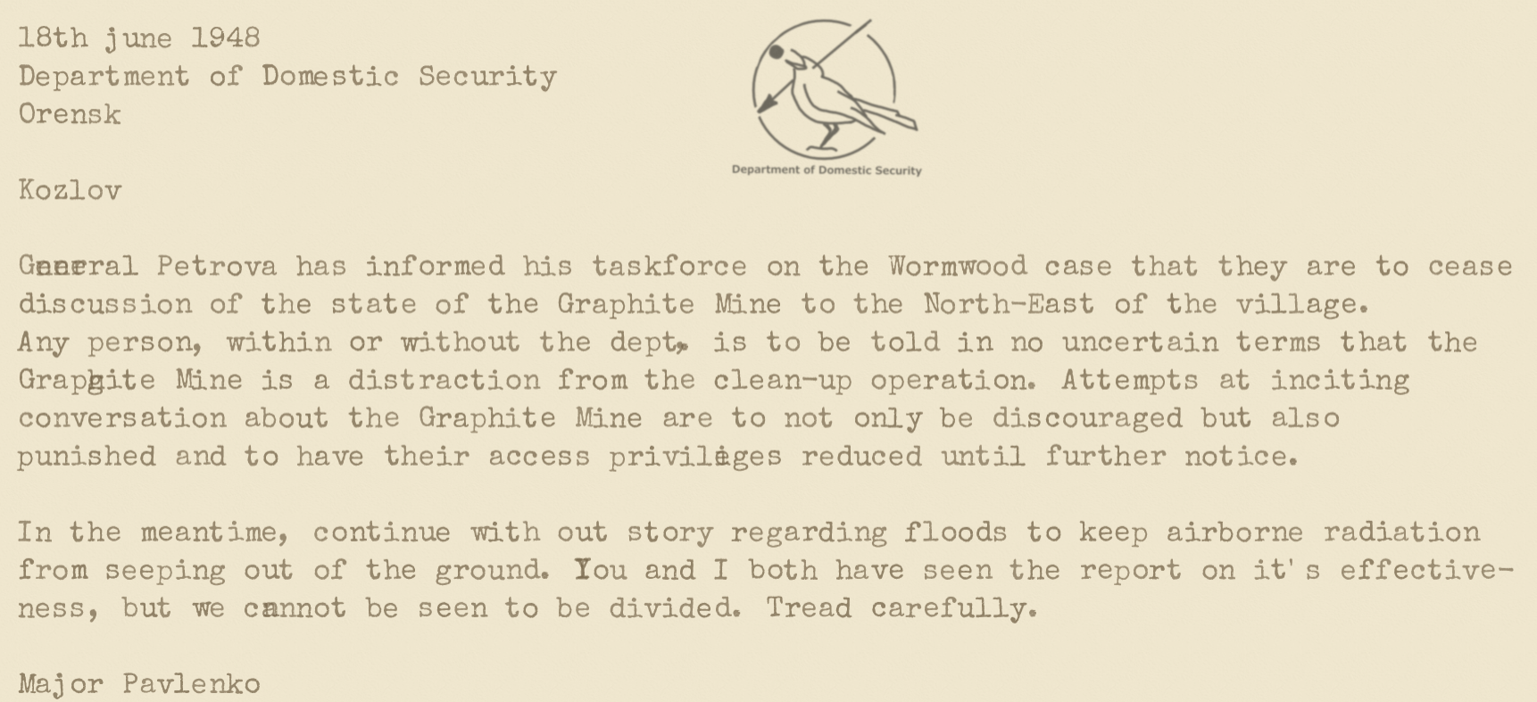 The Oren Government kept their actions and decisions under tight wraps during the fallout and clean up operation of WNP. Occasional leaked documents and memos reveal the levels of corruption at work.